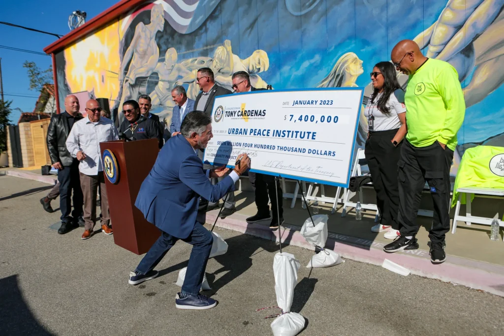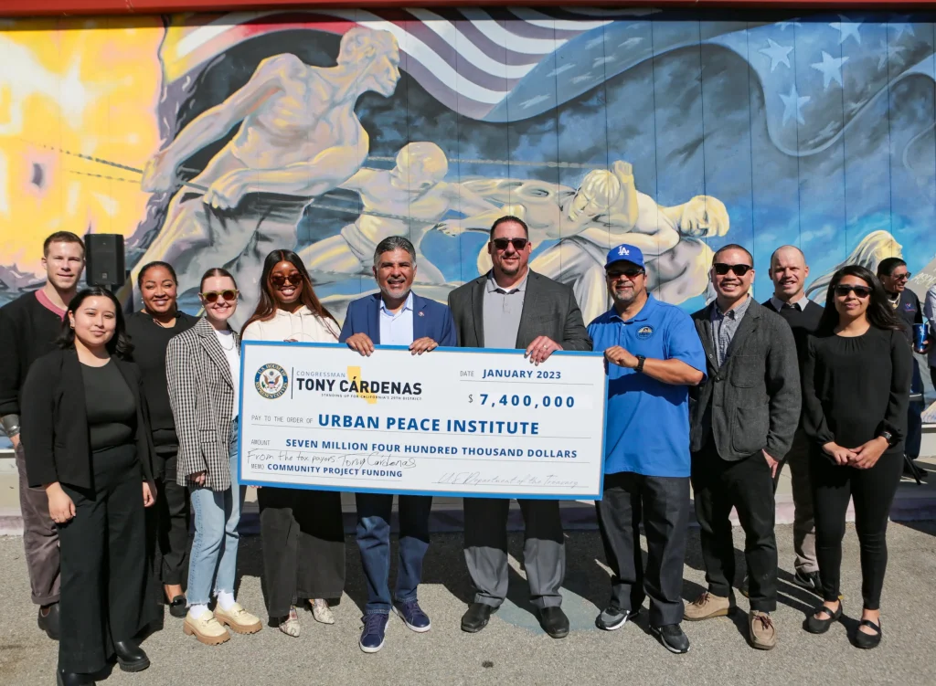 Urban Peace Institute (UPI) announced $7,400,000 in federal earmark funding to implement the LA Peacemakers Initiative alongside Congressman Tony Cárdenas and with support from former Congresswoman, now Los Angeles Mayor Karen Bass and the Office of Gang Reduction and Youth Development (GRYD). Approximately 150 attendees, including peacemakers, city officials, and allies, gathered at Champions In Service Los Angeles to celebrate the announcement.